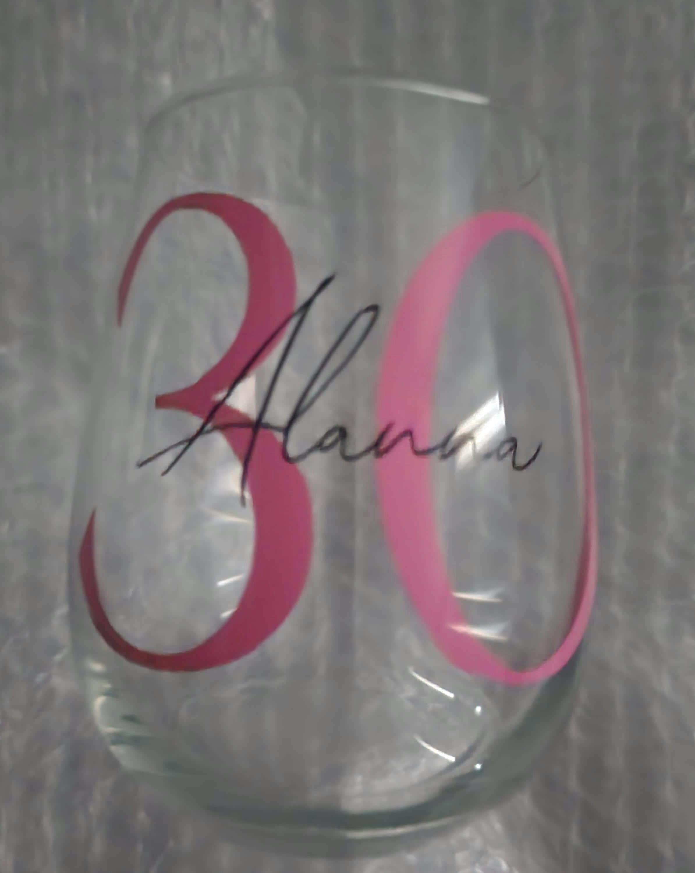 Celebrate birthdays, milestones, or everyday moments with this personalised stemless wine glass, designed to feel thoughtful, modern, and easy to gift. Featuring a bold initial or age paired with a name through the centre, this 360ml glass makes a meaningful personalised gift Australia customers love for its simplicity and versatility.